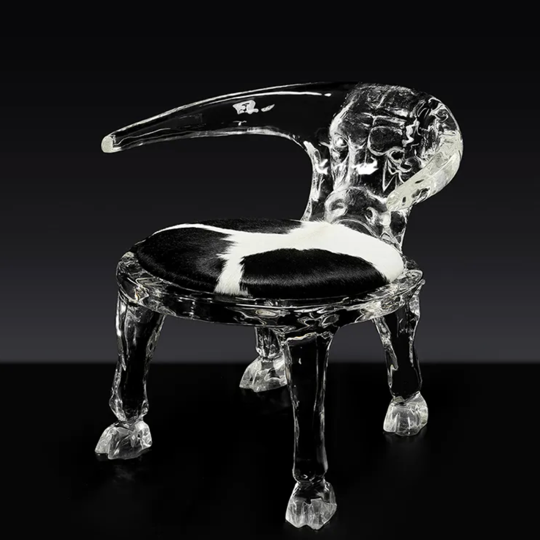 Through the art of sculpture and the ox culture, combined with the transparent characteristics of the material, This piece aims to showcase a sense of power, solidity, and stability, highlighting a confident demeanor while also suggesting prosperity, progress, and growth.