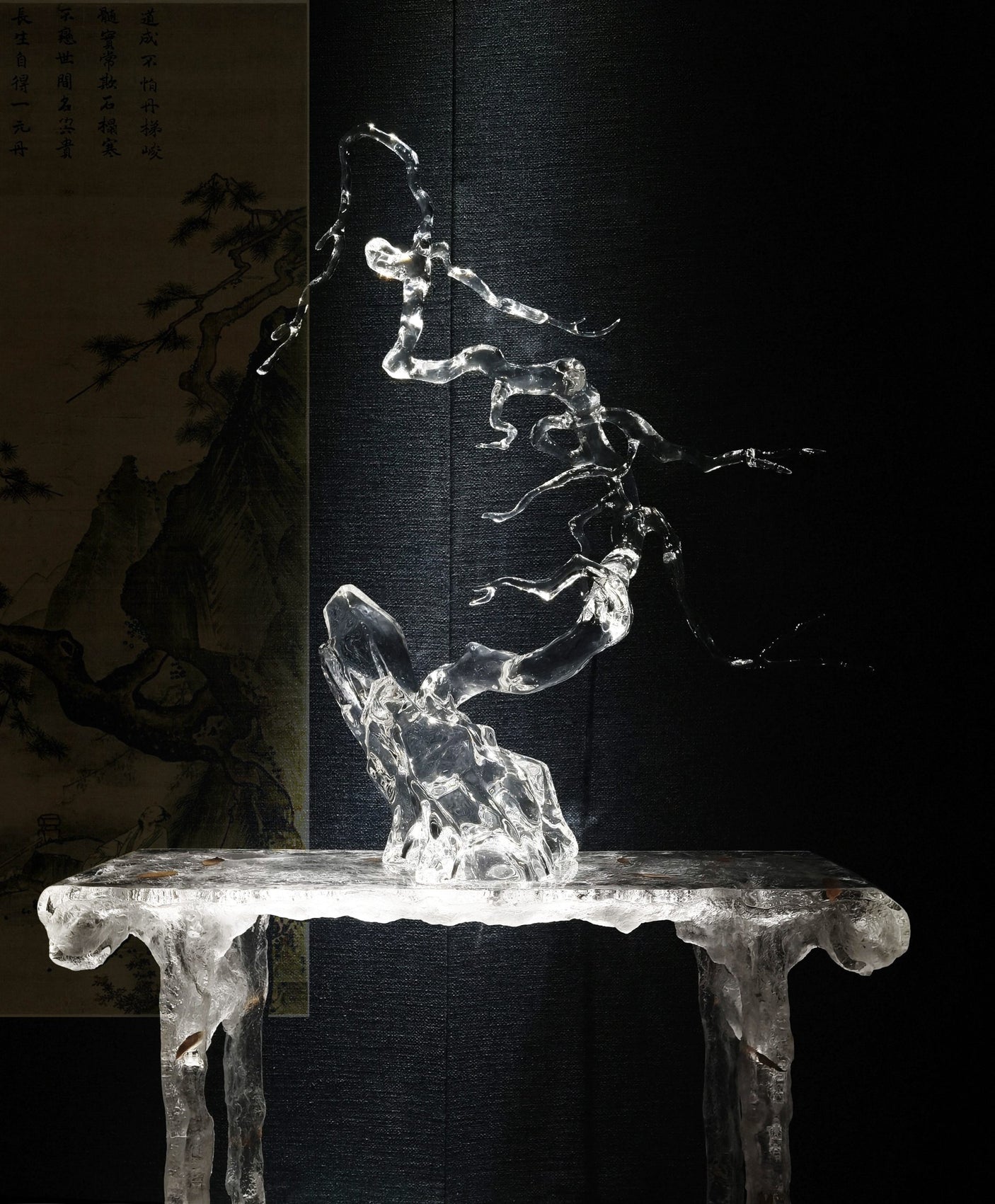 Enhance your entryway with the celestial charm of the Curve Scroll Console. Expertly crafted with exceptional attention to detail, this stunning piece features Glacier Crystal accents that add a hint of mystique.