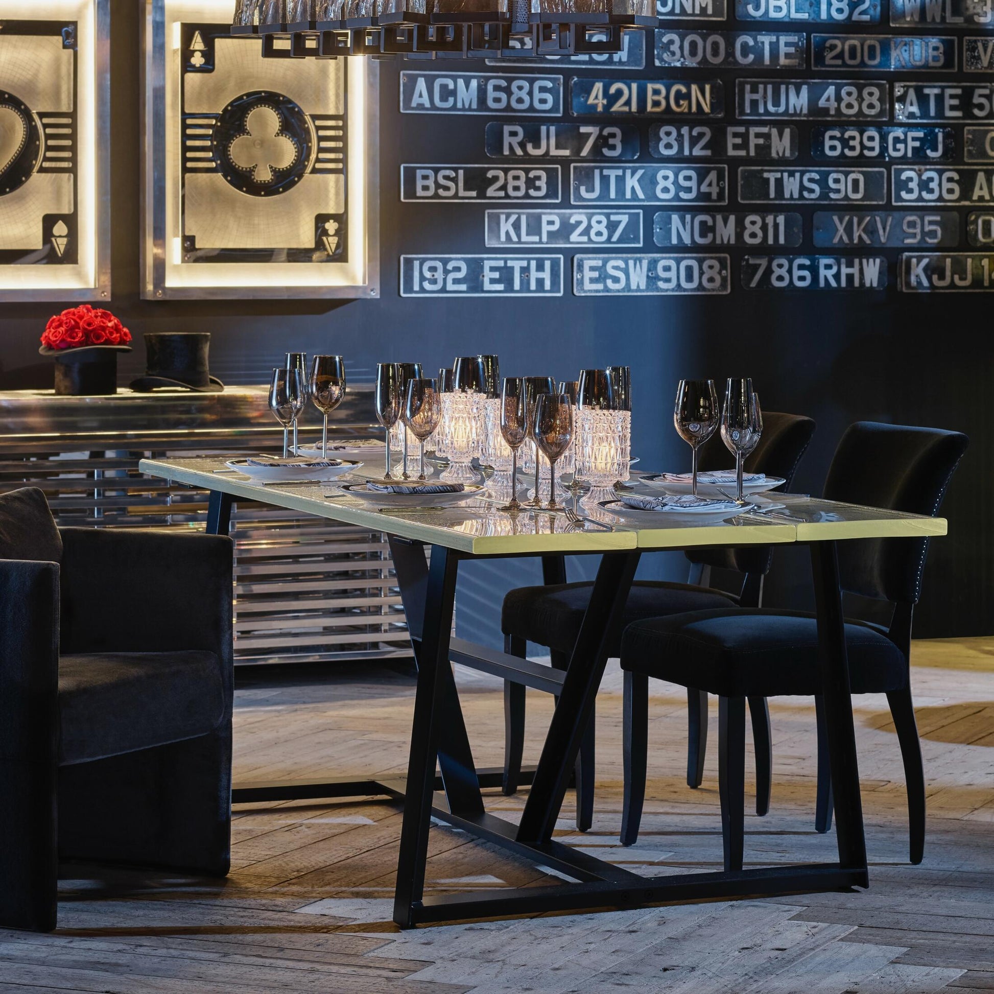 Encapsulating the elemental power of ice through its strong architectural aesthetic, the Iceberg dining table floats three sleek glass planks atop a rigid steel frame. The glass has been cast with a unique rippled texture to evoke frozen blocks of water. Each plank has a smooth underside, and can simply be carefully lifted and turned if preferred. Small white markings may appear within the grooves of the rippled side, this is a characteristic of the glass and part of the design.