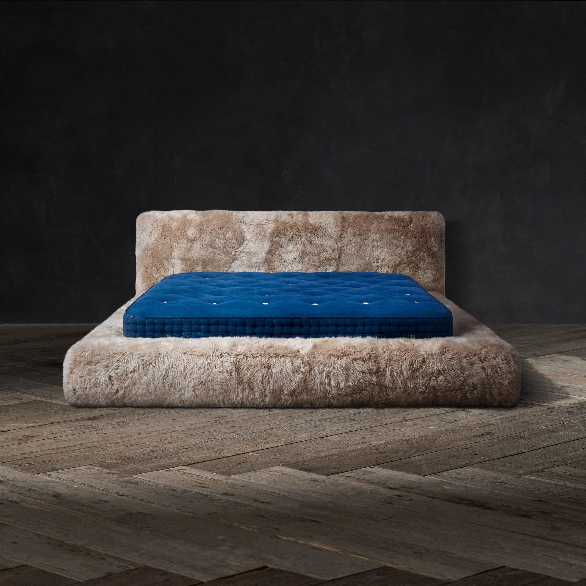 Reconnecting with natural materials and ancient craft, the Ovis bed offers a deeply primal yet modern take on luxury. Named after the genus of sheep, Ovis is upholstered in the softest premium sheepskin from New Zealand, a natural heat regulator which keeps you cool in the summer and warm in the winter. A generously sized platform and headboard are designed for luxuriant lounging, while the thick, deep pile of the sheepskin offers a richly sensorial experience.