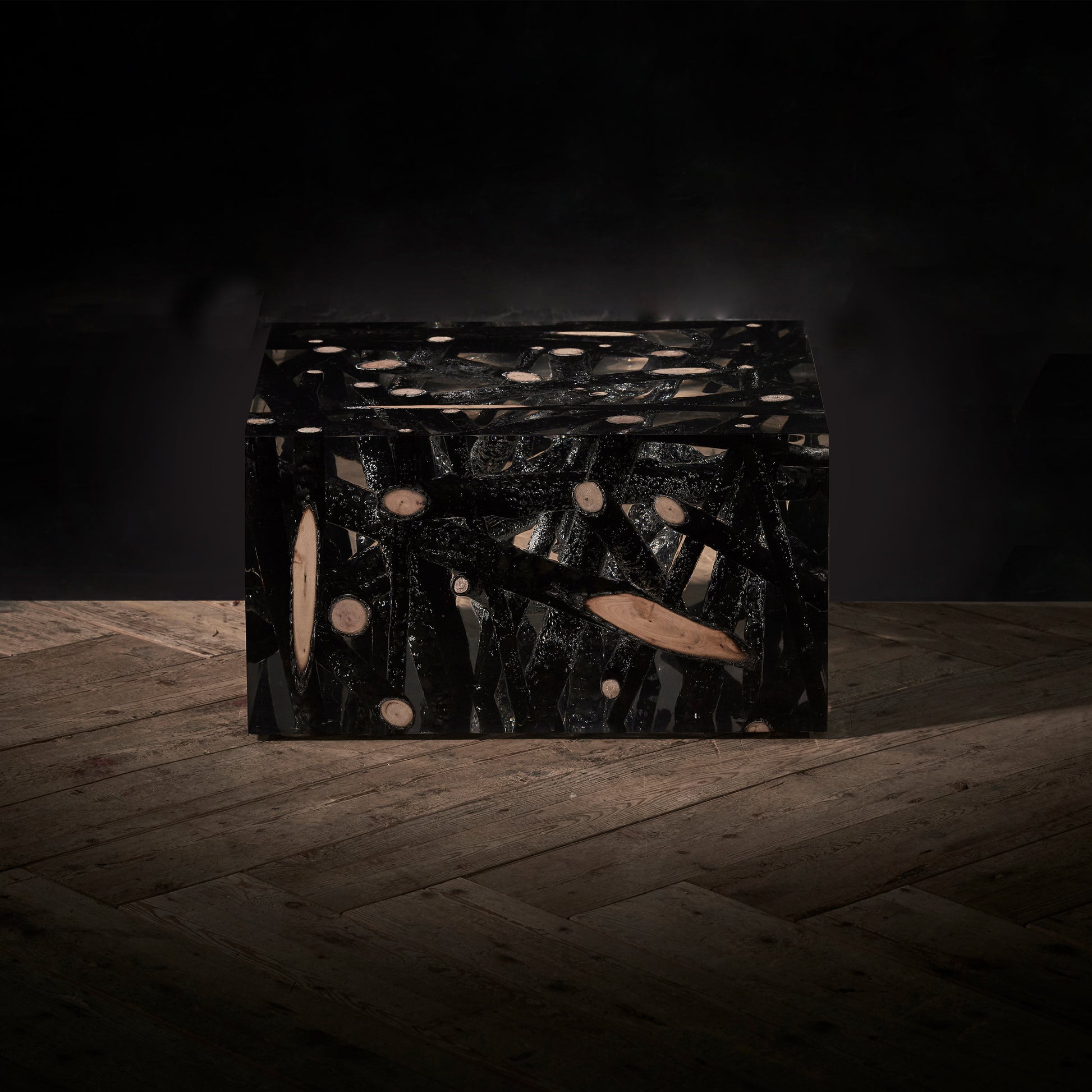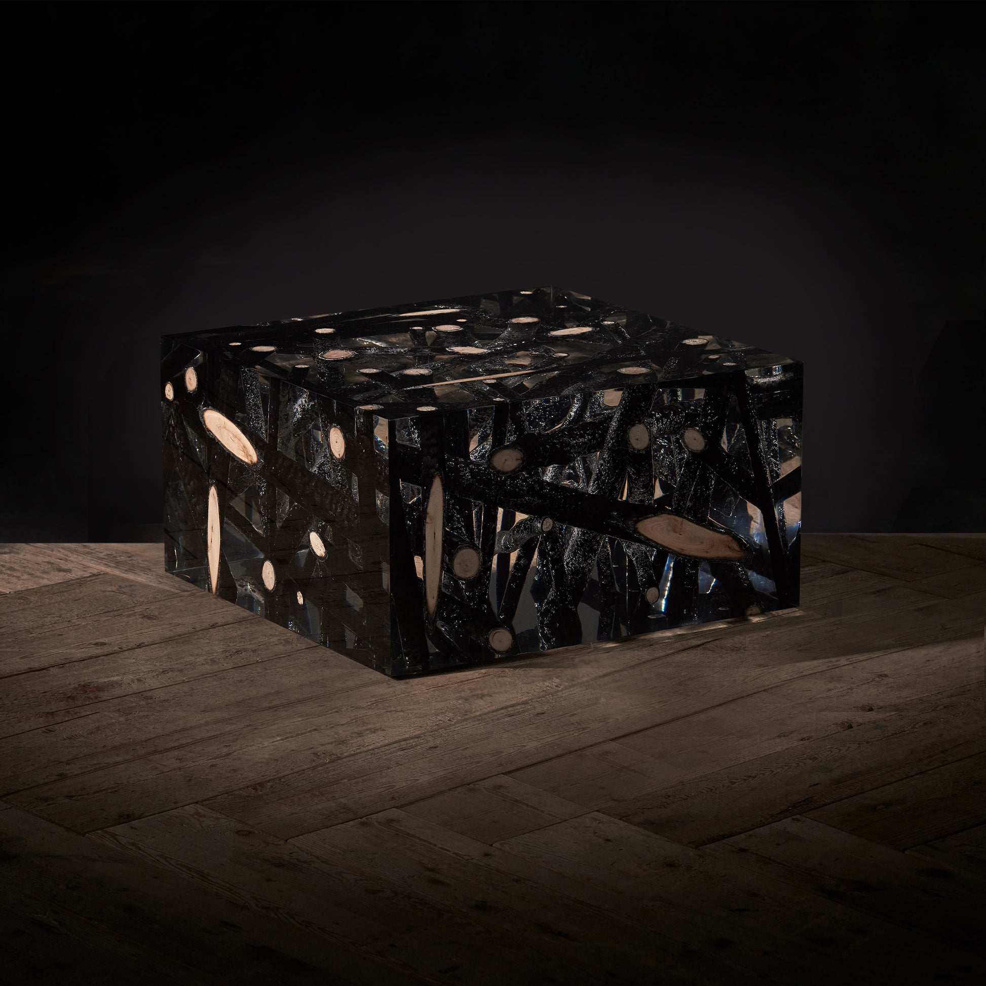 Created using salvaged driftwood that has been collected by hand from beaches all over the world, each piece uniquely marked by swathing tides and weathered shores. Crafted over many hours in a painstakingly delicate process, the once forgotten wood is suspended within crystal-clear acrylic, each tiny bubble like a last breath of air before being frozen in time. The Spur side table is available in either natural driftwood or burntwood, evoking sizzling campfires on the beach.