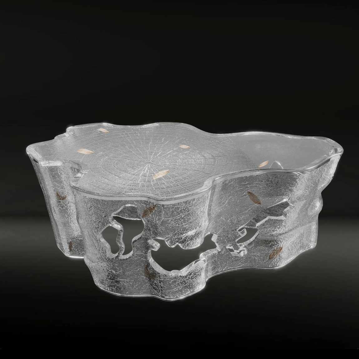 This coffee table takes inspiration from the cross-sections of tree trunks, capturing the organic curves, natural fissures, and intricate texture variations of tree rings with remarkable fidelity.