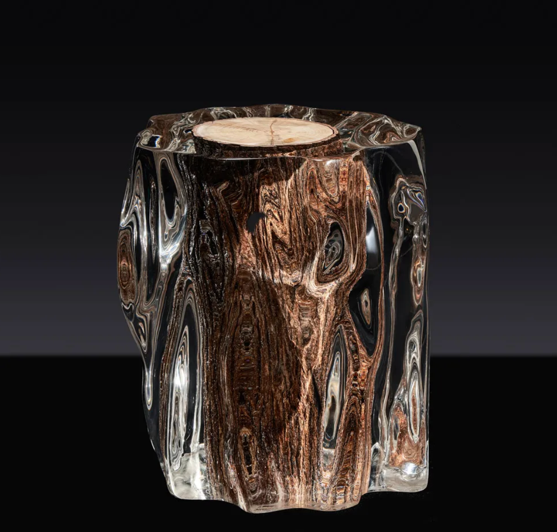 Nature and artists, colliding with the latest high-tech transparent material molding process, colliding with nature and artists, spark a neo-luxism. Each piece of work is unique. Though seemingly unintentional, each decaying wood, each dead branch or even each leaf, is actually carefully selected by the artist as he goes deep into nature. Materials have gone through the baptism of time which left traces of its memory. Adhering to the spirit of the craftsman, the artist creates a series of creative home items through 28 steps of grinding, polishing and other complicated processes, making decaying wood, dead branches and leaves recover their respiration and glow with new life. Time seems to stand still, while life has been sublimated.